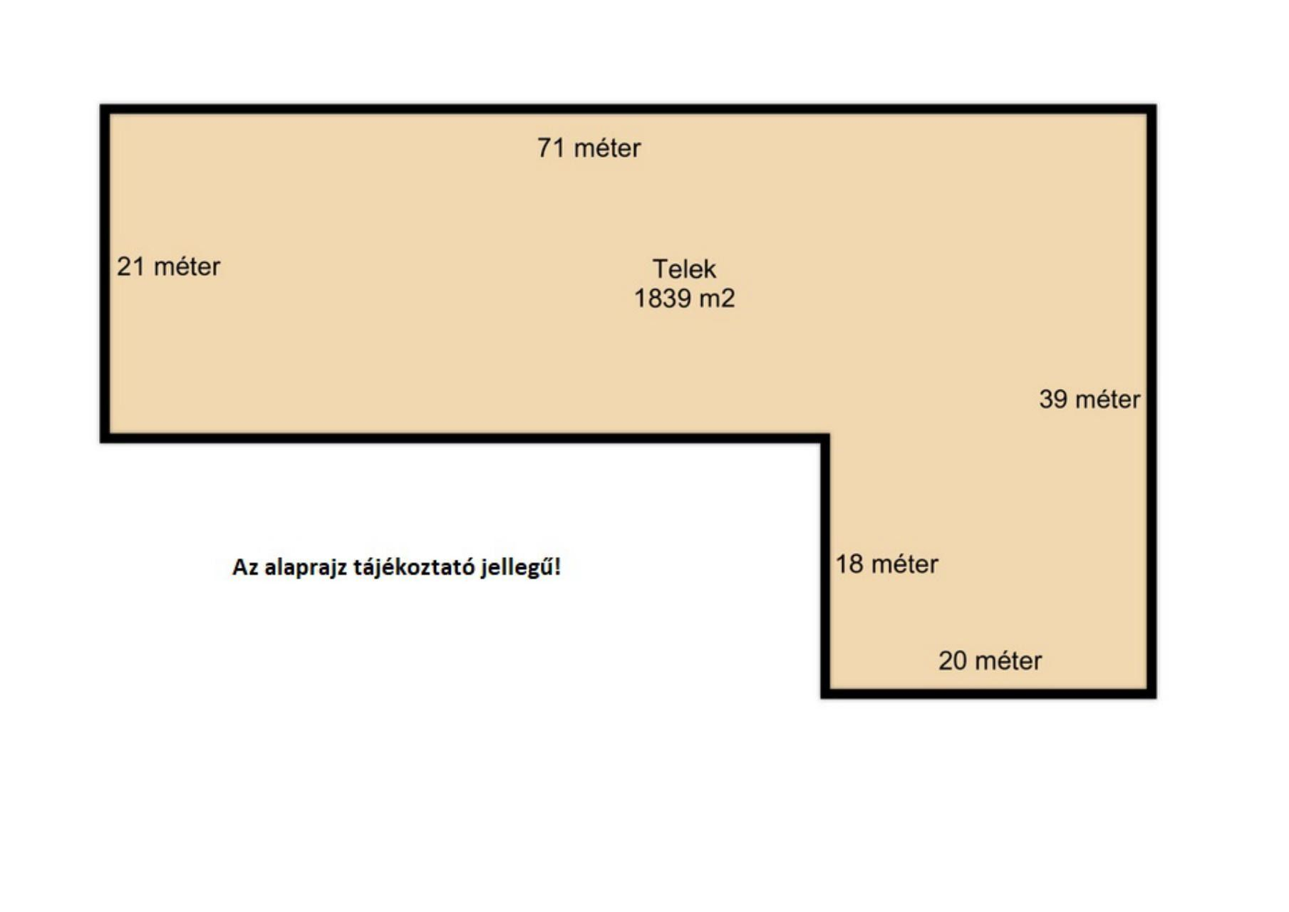 A telek mérete összesen: 1839 m2.