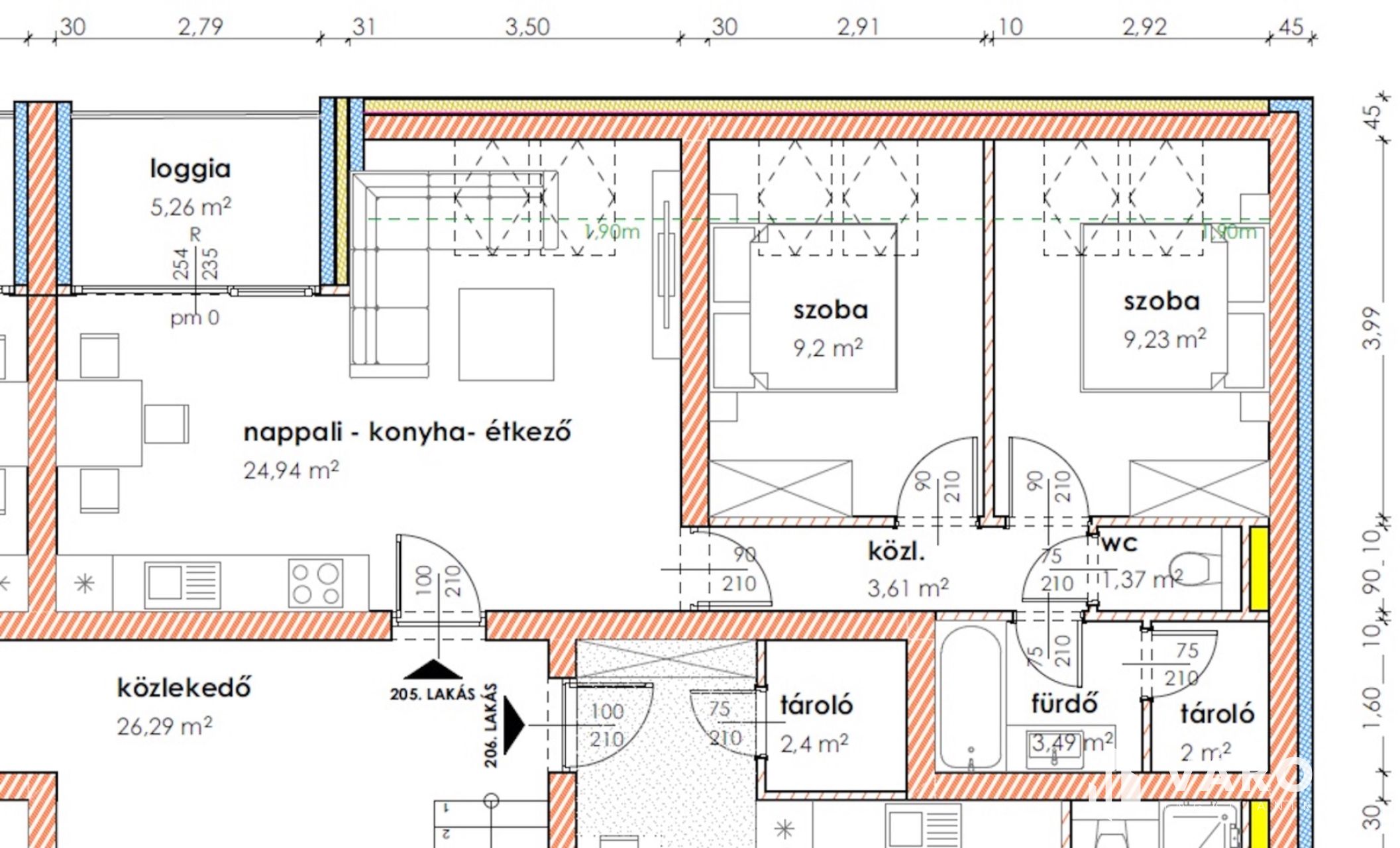 Makón, presztizs lokációval rendelkező - Makói fürdőtől 60 méterre, a Napfény Residenceben - a Páva utcában , Eladó egy most induló, tégla építésű, MÁSODIK EMELETI , 59,10 nm-es élettérrel rendelkező, amerikai konyha nappali plusz kettő szobás, loggiás, lakás (205.lakás).